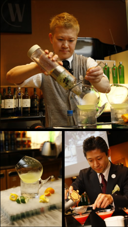 「シロックウォッカマティーニ」「サカパモヒート」「シングルトンロブロイ」など6つの課題カクテルを8分以内で仕上げていく。しかしスピードだけではなく、美味しさはもちろん技術やプレゼンテーション力も問われる。昨年は時間を超過すると6秒ごとに1ポイントのペナルティが科せられたが、今年は8分を過ぎると味の評価を受けられないというより厳しいものに。BGMは自分で持ち込んだものをかけられるため「聴きなれたものを持っていくと、サビで時間の経過がわかる(某ファイナリスト)」といったウラワザもあるようだ。藤井 隆氏(Bar,K/大阪)は、サッカーの話題から世界大会の話を経由してブラジル伝統のカクテル、カイピリーニャをサーブ。ヘミングウェイ愛用のバーのレシピでモヒートを出すなど、多彩な話題で審査員を楽しませながらプレゼンテーションし、見事部門賞を獲得した。